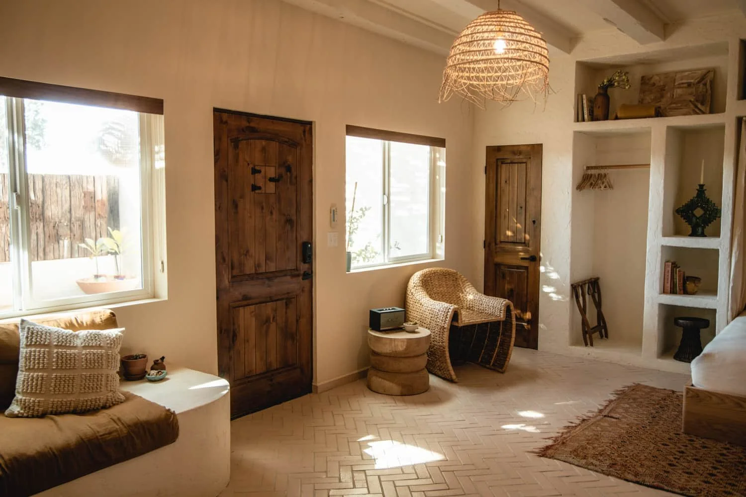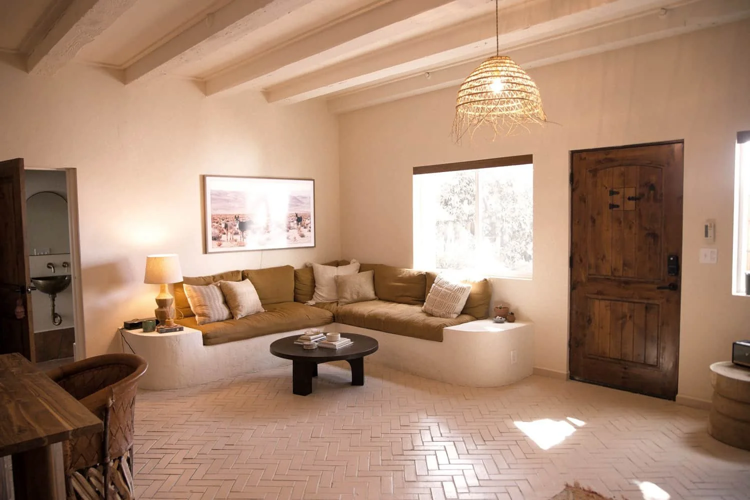 The Creosote Suite (pronounced kree-uh-sowt) is a private lower-level sanctuary designed for grounded desert living and quiet restoration. Thoughtfully appointed and spacious, this suite offers a king bedroom, a private bathroom, a comfortable living room, and a full kitchen. Ideal for those who appreciate extra space and ease during their stay.