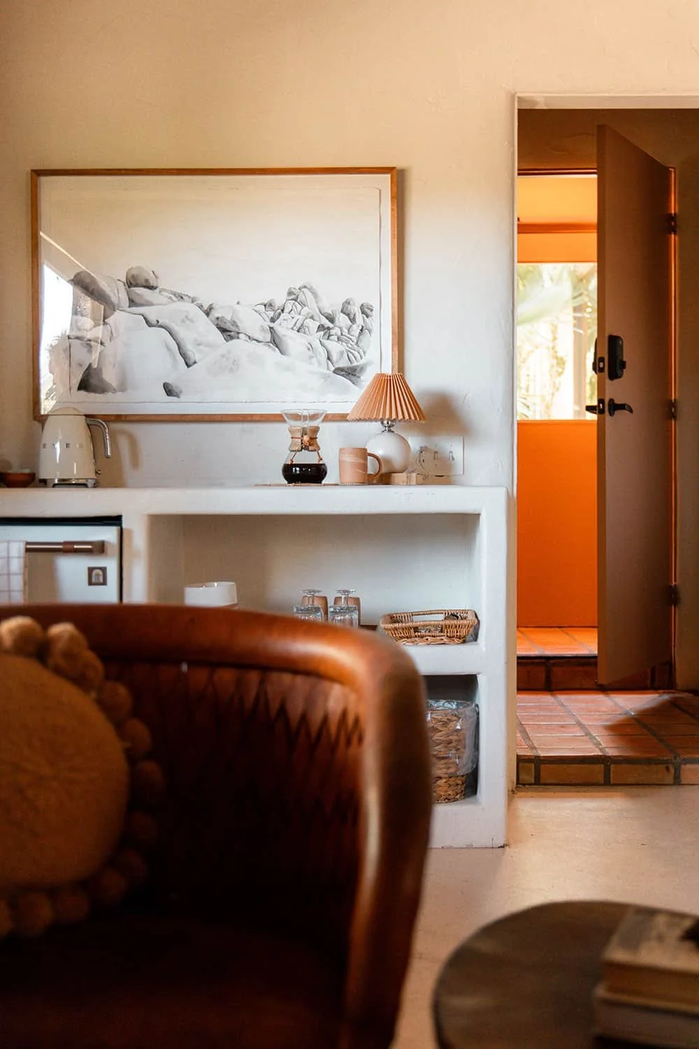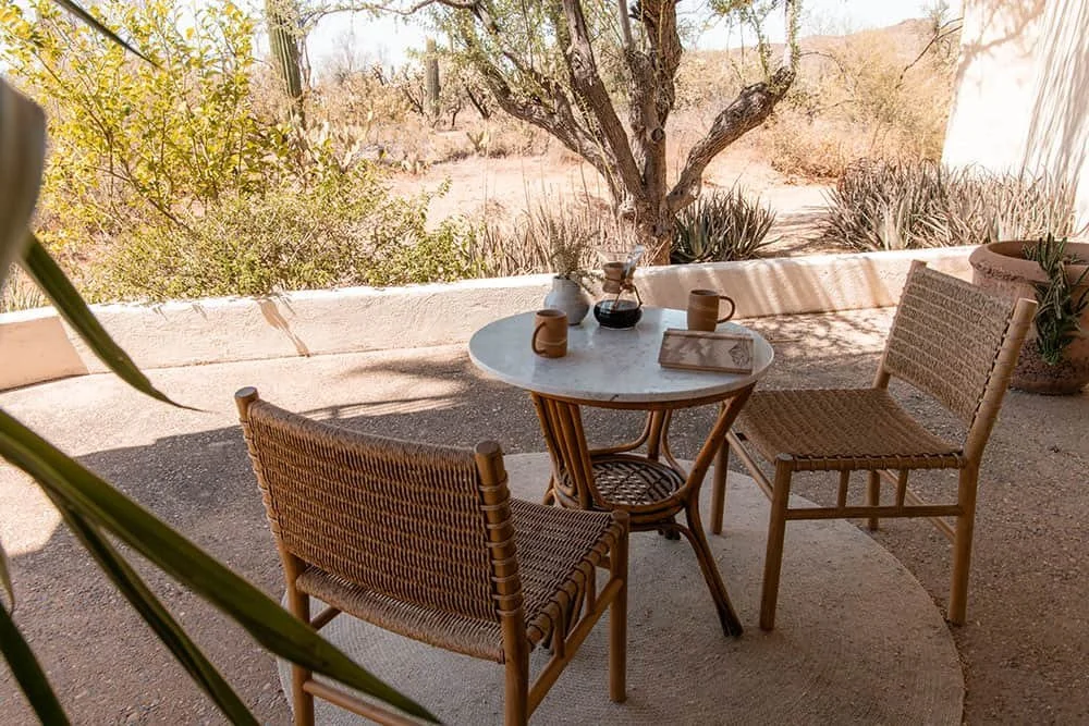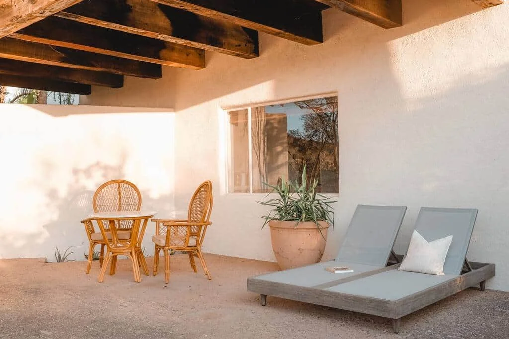 Bathed in natural light and infused with desert warmth, this room opens directly onto the quiet rhythms of the Sonoran landscape — perfect for morning journaling, sunrise coffee, or settling in after a full day of workshops and community.